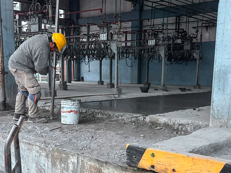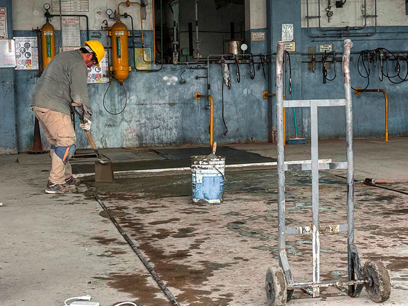 Provisión total de M.O. y Materiales para realización de carpeta con materiales específicos en piso sectores de carga garrafas en planta (290 m2 aprox). Para la realización se deberá limpiar perfectamente el sitio mediante hidrolavado a alta presión con máquina autónoma, retirar restos de material deteriorado o flojo y realizar una carpeta completa con Sika FastFix-200. Las juntas de dilatación se utilizarán para organizar paños a tratar por etapas. Marcado en 3 sectores de 4,00 x 1,50 carga canastos con amoladora para luego rebajarlos con rotomartillos de 2 a 3 cm. Posteriormente, se nivelarán con una carpeta completa con Sika FastFix-200.